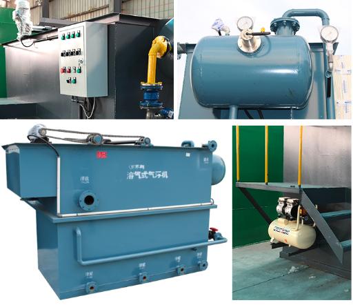 溶气气浮机主要用于固—液或液—液分离。通过溶气和释放系统在水中产生大量的微细气泡,使其粘附于废水中密度与水接近的固体或液体微粒上,造成整体密度小于水的状态,并依靠浮力使其上升至水面,从而达到固—液或液—液分离的目的。
