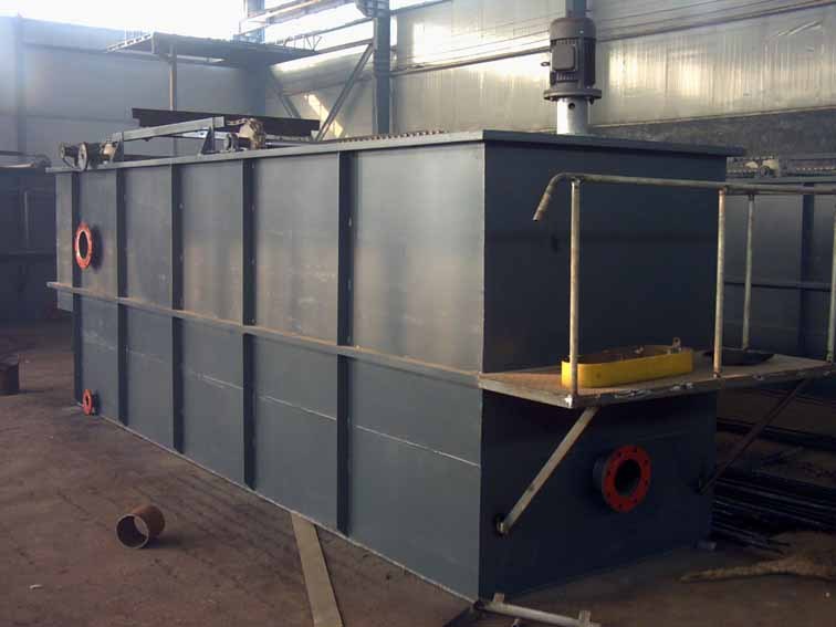 屠宰污水中含有大量的有机物,适合用好氧菌来分解污水中的BOD和COD,然后通过混凝反应池进行反应,在浅层气浮机内与汽泡充分混合后被带出水面。