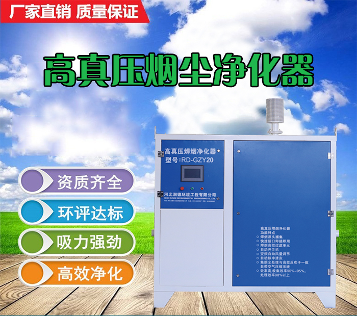 高真压焊烟净化器也称自动焊专用焊烟净化器,高真空焊烟净化器,专用于净化焊接、切割、打磨等所产生的干燥、无油、无腐蚀的烟尘气体。高负压焊烟净化器具有两级过滤器:一级为大颗粒火星过滤,二级为细小粉尘的过滤(微孔覆膜聚脂阻燃型滤筒)。高负压焊烟净化器对焊接、切割及打磨等烟尘的过滤效率可达99.9%!