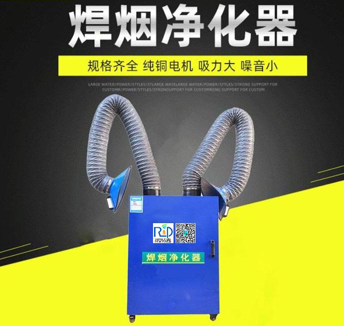 移动式焊烟废气处理设备厂家 双臂单臂焊烟净化设备价格 焊接烟尘净化器用于焊接、切割、打磨等工序中产生烟尘和粉尘的净化以及对稀有金属、贵重物料的回收等,可净化大量悬浮在空气中对人体有害的细小金属颗粒。具有净化效果好、噪声低、使用灵活、占地面积小等特点。 适用于手把焊、电弧焊、二氧化碳保护焊、MAG焊接、碳弧气刨焊、气熔割、特殊焊接等产生烟气的作业场所。 设备主要部件包括:万向吸尘臂、耐高温吸尘软管、吸尘罩(带风量调节阀)、阻火网、阻燃滤芯、带刹车的脚轮、风机、华力电机、脉冲电磁阀等。烟尘通过焊烟净化器产生的负压由吸气罩吸入烟尘,经柔性吸气臂进入腔体,流速变慢使大颗粒直径的粉尘掉落下来,含微细粉尘的气流进入净化室内,粉尘的过滤分离在净化室内通过滤筒的分离作用完成,烟尘则被滤芯阻拦在其表面上,净化后的空气经风机排出,当被阻拦的烟尘在滤芯表面不断沉积时,定时开启脉冲清灰系统,手动清灰式需将滤筒取出手工清理。静电式需定期清洗电极板。