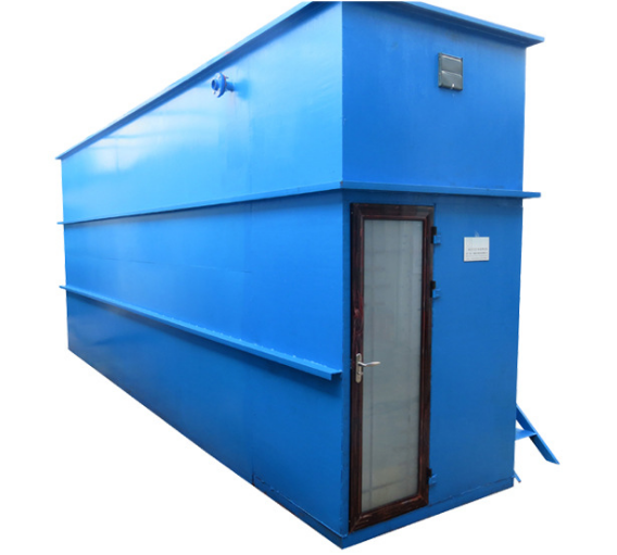 化粪池出水,自流进入小型一体化污水处理设备。设备可埋入地下,节省用地,也可放置于地面,减少土建工作。小型一体化污水处理设备内部分为水解酸化池、接触氧化池、污泥沉淀池、接触消毒池,接触消毒池外部接入二氧化氯发生器对污水作杀菌消毒处理。处理完毕,可自流达标排放。