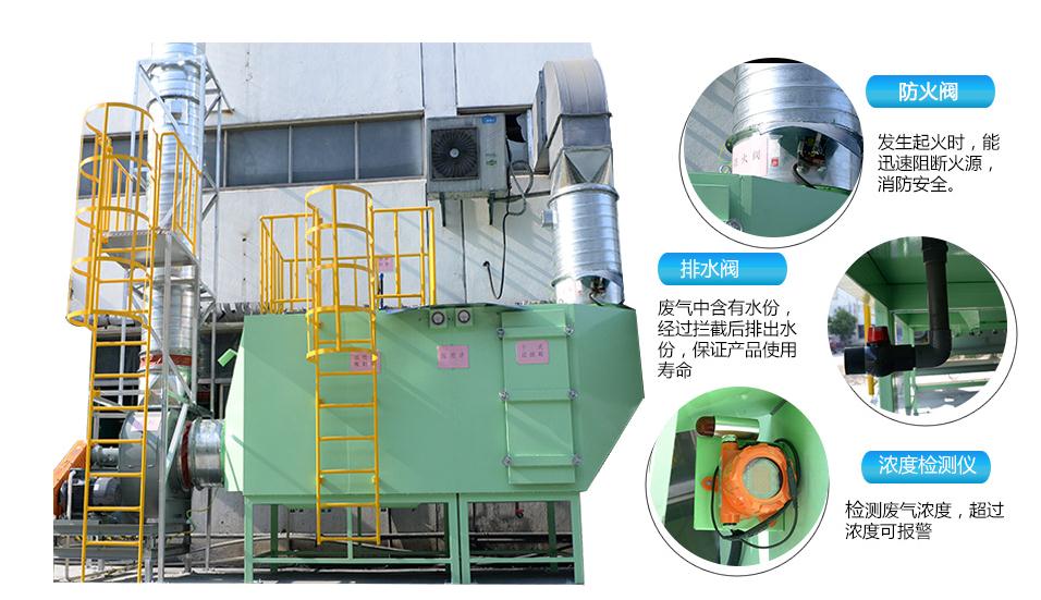 当废气由风机提供动力,负压进入吸附箱后进入活性炭吸附层,由于活性炭吸附剂表面上存在着未平衡和未饱和的分子引力或化学键力,因此当活性炭吸附剂的表面与气体接触时,就能吸引气体分子,使其浓聚并保持在活性炭表面,此现象称为吸附。