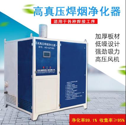 焊烟废气处理设备 焊烟除尘净化设备 高真压烟尘净化器厂家|专用于净化焊接、切割、打磨等所产生的干燥、无油、无腐蚀的烟尘气体。高负压焊烟净化器具有两级过滤器:一级为大颗粒火旋滤,二级为细小粉尘的过滤(微孔覆膜聚脂阻燃型滤筒)。高负压焊烟净化器对焊接、切割及打磨等烟尘的过滤效率可达99.9%!