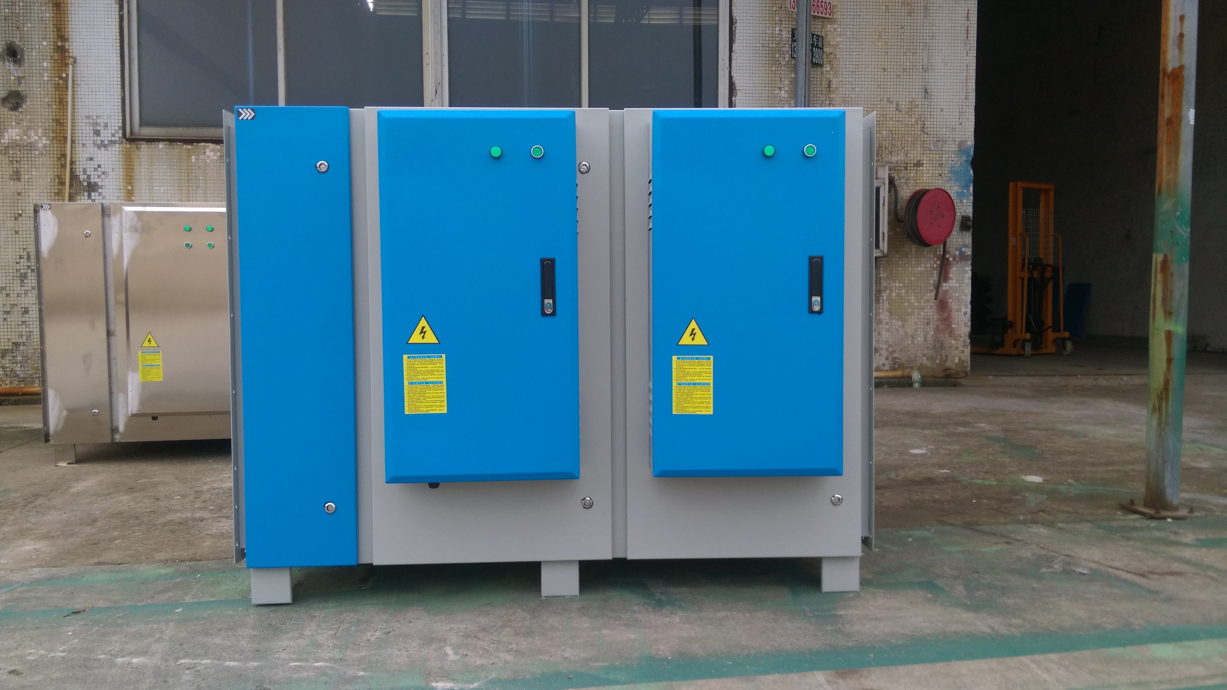 2、选择相匹配的风机风量,风机的风量选择一般小于静电式油烟净化器的处理风量;(此数据仅供参考,具体技术按现场情况而定,如果风机的风量选择过大于油烟净化器的大处理风量时会影响净化器的净化效果)。