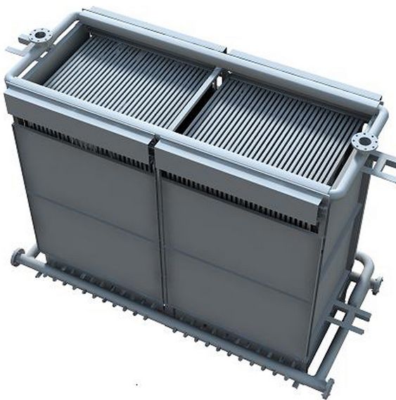 膜生物反应器(Membrane Bio-Reactor,MBR)是膜分离技术与生物处理技术有机结合之新型态废水处理系统。以膜组件取代传统生物处理技术末端二沉池,在生物反应器中保持高活性污泥浓度,提高生物处理有机负荷,从而减少污水处理设施占地面积,并通过保持低污泥负荷减少剩余污泥量。主要利用沉浸于好氧生物池内之膜分离设备截留槽内的活性污泥与大分子有机物。膜生物反应器因其有效的截留作用,可保留世代周期较长的微生物,可实现对污水深度净化,同时硝化菌在系统内能充分繁殖,其硝化效果明显,为深度除磷脱氮提供可能。