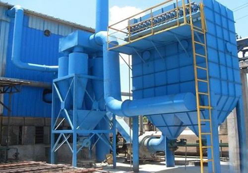 低压脉冲袋式过滤器的气体净化方式为外滤器。含尘气体从导向管进入各单元过滤室。在设计中,由于滤袋底部与进气口上部有足够的垂直距离,通过适当的导流和自然流动方向,合理的气流分布可以在整个过滤室内实现均匀的气流分布。含尘气体中的粉尘颗粒经自然沉降分离后直接落入灰斗内,其馀的粉尘在导流系统的引导下直接落在灰斗中。随着空气的流动进入过滤区的中间箱,吸附在过滤袋的外表面。过滤干净的气体通过过滤袋通过上箱,排气管排出。