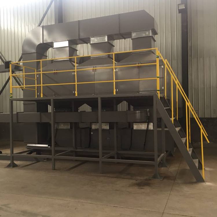 活性炭吸附塔是处理有机废气、臭味处理效果好的净化设备。活性炭吸附是有效的去除水的臭味、天然和合成溶解有机物、微污染物质等的措施。大部分比较大的有机物分子、芳香族化合物、卤代炔等能牢固地吸附在活性炭表面上或空隙中,并对腐殖质、合成有机物和低分子量有机物有明显的去除效果.废气处理设备活性炭吸附作为深度净化工艺,经常用于废水的末级处理,也可用于长产用水、生活用水的纯化处理。当粉尘和颗粒物比较多时,活性炭吸附装置可同时和水帘机和水喷淋塔和UV等离子一起使用,达到废气净化达标排放