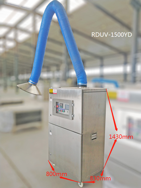 移动VOC处理器箱体内部自带风机和过滤器,风机将挥发源处的风通过吸风罩及管道抽进箱体的过滤装置,过滤之后的洁净空气直接排出室内。用户可自行设置合适的报警点,提高室内空气质量等级。